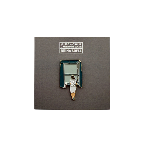 Pin fabricado con metal y esmalte de alta calidad. Diseño inspirado en la obra "Figura en una finestra (Figura en una ventana)" de Salvador Dalí.
